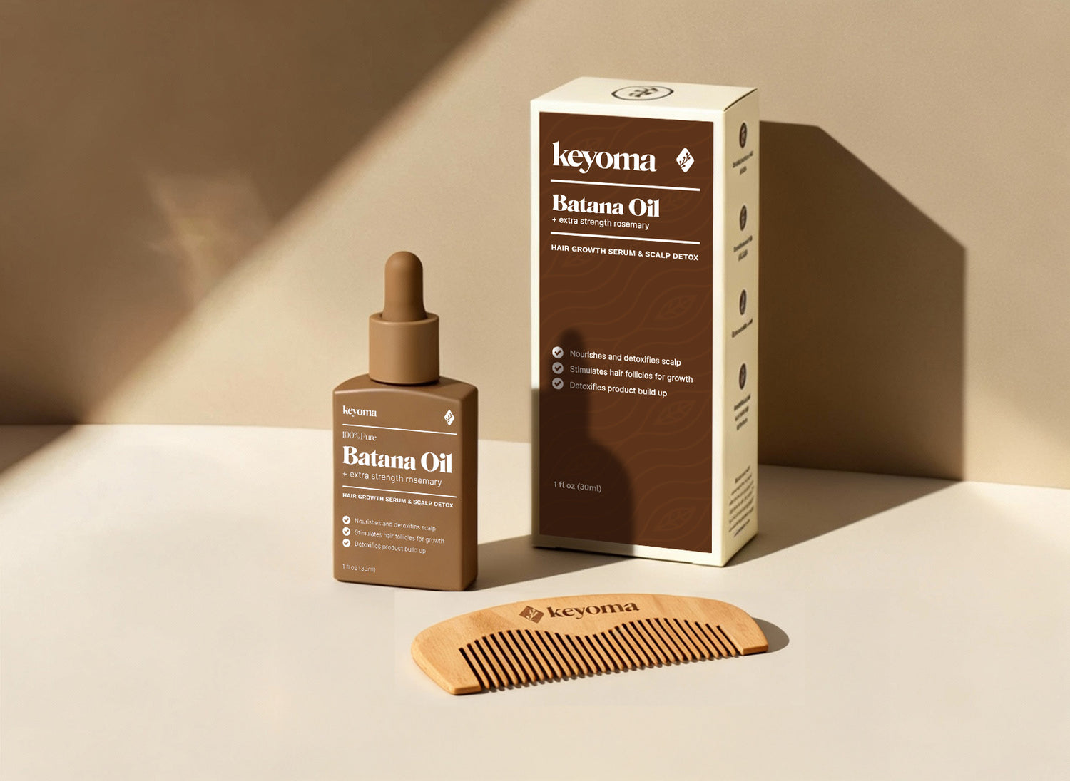 Un estudio de 2015 comparó el aceite de romero con el minoxidil, un conocido tratamiento para el crecimiento del cabello, pero sin efectos secundarios. Combinado con el aceite de batana, el sérum de Keyoma es la solución para el crecimiento del cabello más potente y segura del mercado.